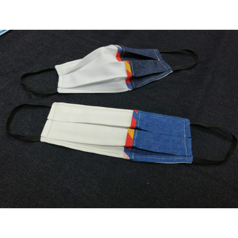 Máscara de piquê e ganga com vivo de tecido regional - Made by Hugo Santos